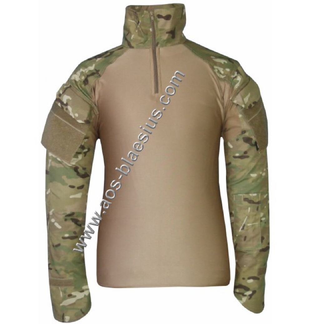 65% Baumwolle / 35% Polyester / 100% Polyester Funktionsgewebe (feuchtigkeitsleitend, schnelltrocknend, atmungsaktiv), YKK RV's, Umlegbarer RV-Stehkragen, 2 Oberarmtaschen mit zusätzlichen Aussenfächern, Ärmel mit Polstertaschen, Konturgeschnittene Armabschlüsse mit Klettverstellung.