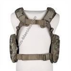 Ausstattung: Vier Magazintaschen G 36/SIG/AUG/M4-M16; Zwei Mehrzwecktaschen an der Seite (geeignet für US 1l-Wasserflasche); Sämtliche Taschen mit Reißverschuss oder Klettverschlusssystemen (verstellbar); Molle-System für Zusatzausrüstung; Ausklappbare Aufnahme für Schutzplatten (nicht im Lieferumfang enthalten); Verstellbare, gepolsterte Träger, Material: Cordura (100% Nylon)