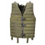 verstellbare Schulter- und Seitenteile, 1 große Rückentasche mit Klett und je 1 Seitentasche mit RV innen, aus robustem Netzmaterial, Gurtschlaufen vorne und hinten mit Druckknopf und Klett, Tragegriff hinten, 100 % Polyester 900D.