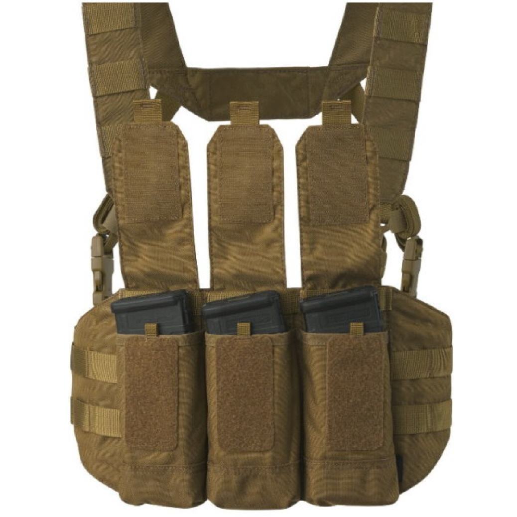 Das Chicom Chest Rig verfügt über ein unverwechselbares Design und drei Taschen mit Klettverschluss. Die Klappen können abgenommen und durch im Set enthaltene Abzieher ersetzt werden. Die Brusttaschen bieten Platz für AK/AR-Magazine. Dies ist die Basisversion, die in vielerlei Hinsicht erweitert werden kann. Auf beiden Seiten, von innen und außen, befinden sich MOLLE/PALS-Paneele, in denen Sie zusätzliche Taschen, Cargotaschen, Granatentaschen usw. unterbringen können. Die Anzahl der Munitionsplätze kann bei Bedarf von drei auf fünf erhöht werden. Zusätzlich kann ein Erste-Hilfe-Set oder eine kleine Tasche unter dem Chest Rig befestigt werden. Im Inneren des Chicom befindet sich eine flache Tasche für Dokumente oder Einlagen aus unserem VIS-System, die mit einem weichen Klettverschluss gepolstert ist.