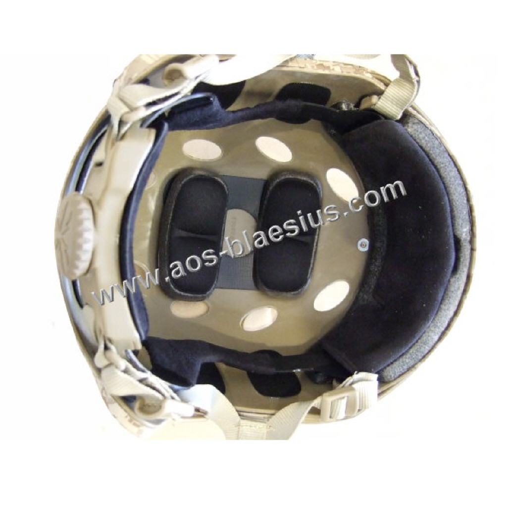 Ausgestattet mit Schienen ideal für die Befestigung von Stirnlampe, NVG, Kamera, Brille, Kommunikationseinrichtungen etc., wodurch er zum Allround-Helm wird. Der Helm ist an mehreren Stellen mit Klettband versehen.