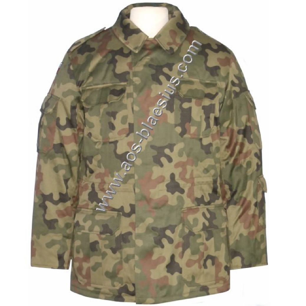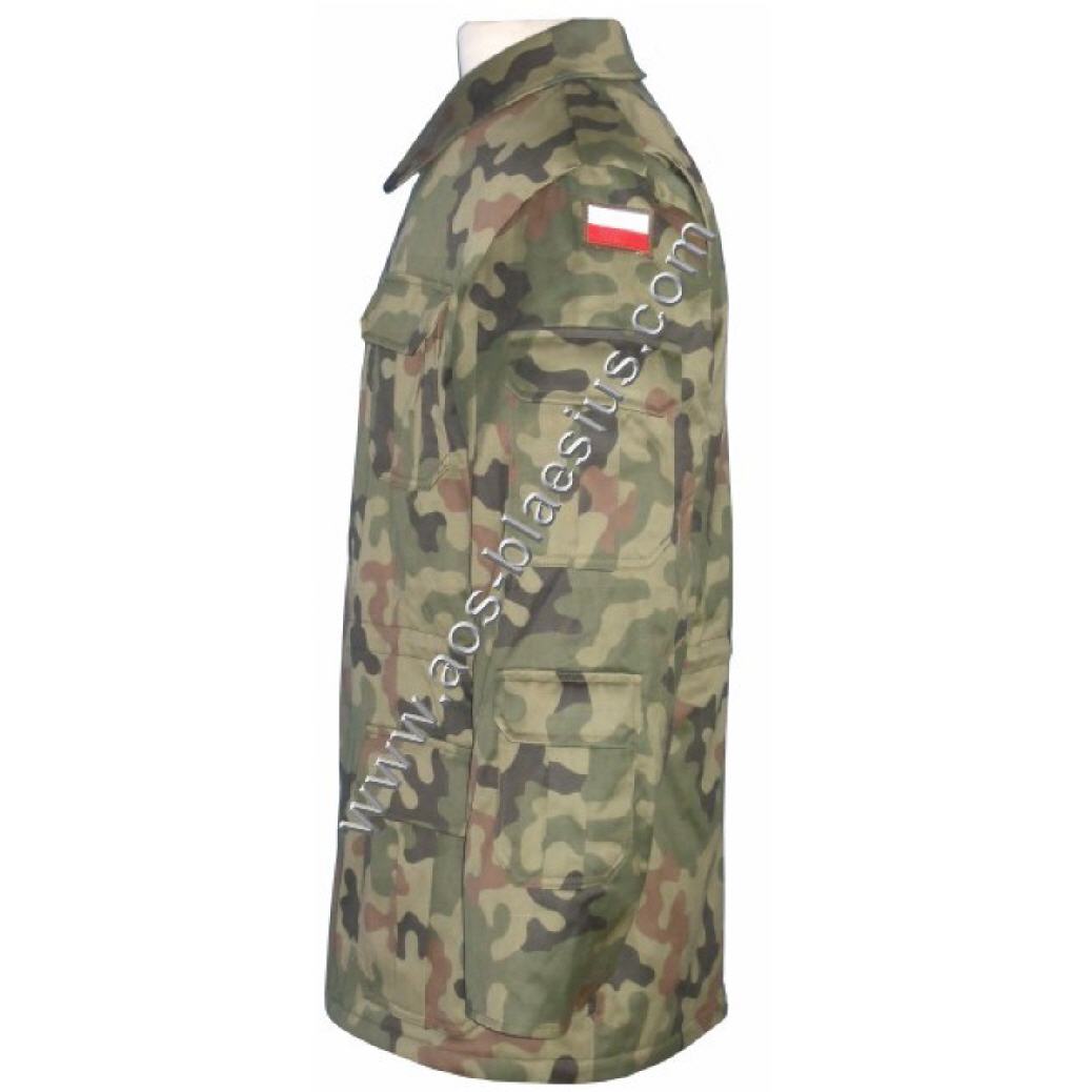 Gefütterte Winterjacke mit Schulterklappen, 4 aufgesetzte Pattentaschen vorne, 3 aufgesetzte Ärmeltaschen, 2 Innentaschen, Kordelzug an Taille, geknöpfter Ärmelabschluss, ohne ausknöpfbarem Innenfutter.