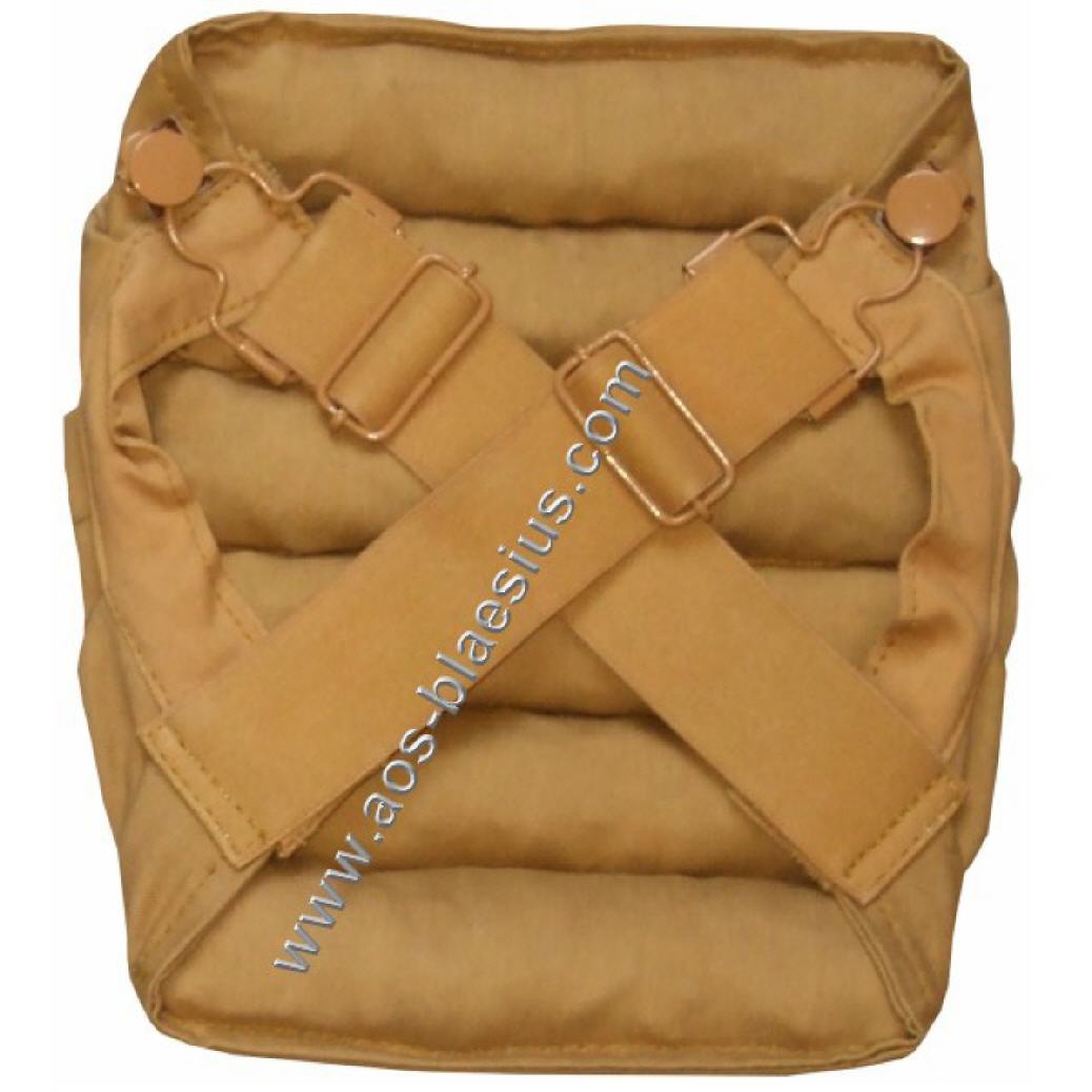 Ein Paar dick gepolsterter Knieschützer mit rückseitiger elastischer Befestigung mit Klammerverschluß.